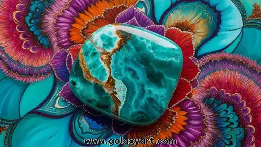 5. تابلوهای هنری: هنرمندان از آمازونیت در تابلوهای هنری و قطعات دیواری استفاده میکنند تا رنگ و بافتی خاص به آثار خود بدهند. این تابلوها میتوانند به عنوان نقاط کانونی در دکوراسیون داخلی عمل کنند.