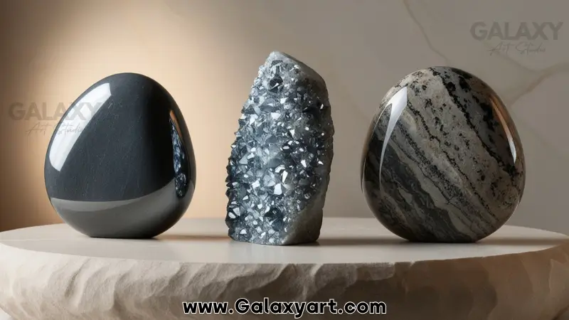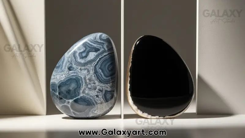 - رنگهای تیره و جذاب: هر دو سنگ معمولاً در رنگهای تیره دیده میشوند و جلوهای شیک و لوکس دارند.