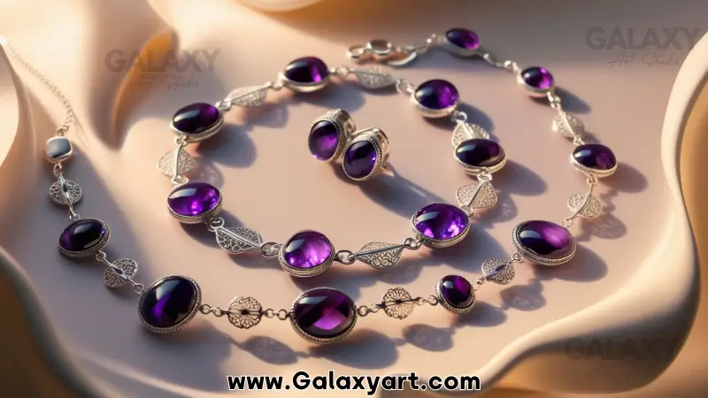 استفاده از سنگهای بنفش در جواهراتی مانند گردنبند، دستبند یا انگشتر، امکان تماس مستقیم با پوست را فراهم میکند. این تماس نزدیک، انتقال انرژی سنگ به بدن را تسهیل کرده و به پاکسازی چاکراها کمک میکند. بهعنوان مثال، آمتیست که یکی از معروفترین سنگهای بنفش است، با چاکرای تاج مرتبط بوده و پوشیدن آن میتواند به تعادل انرژی در این ناحیه کمک کند.