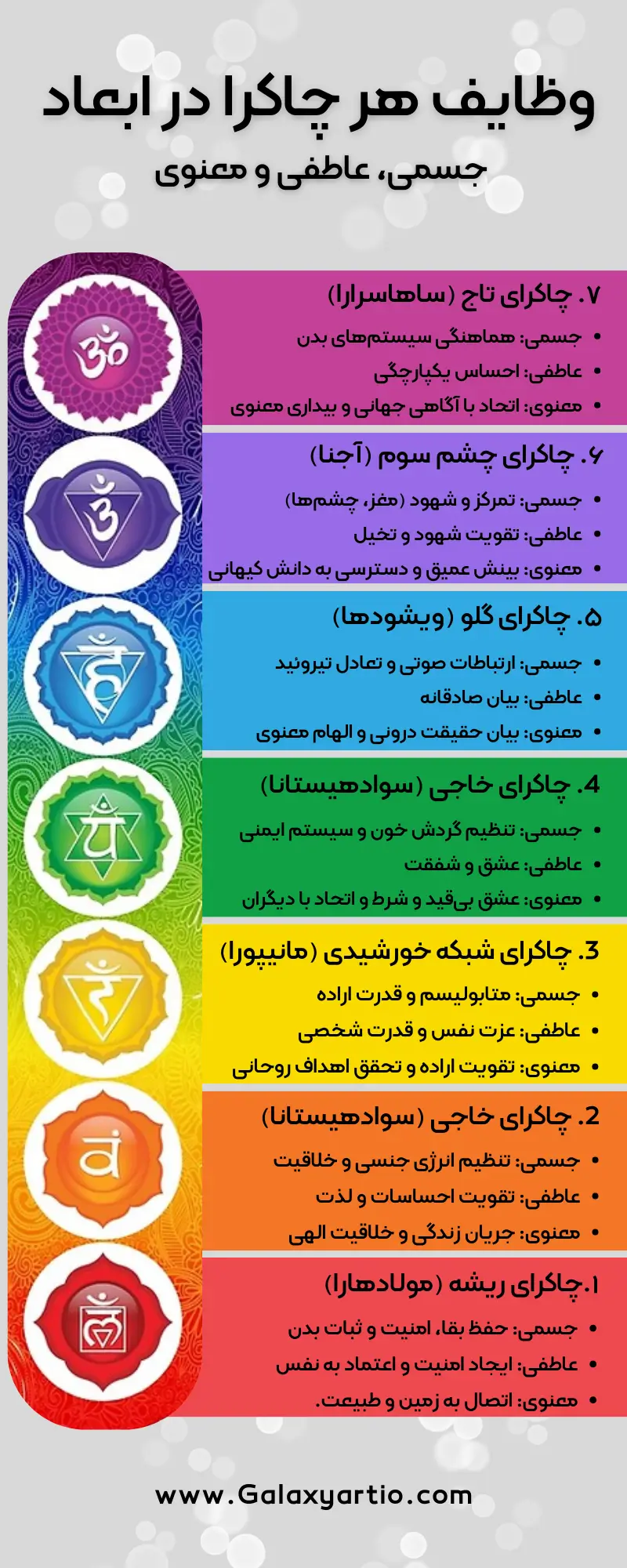 - پاکسازی انرژیها: پاکسازی انسدادهای انرژی در تمام چاکراها.