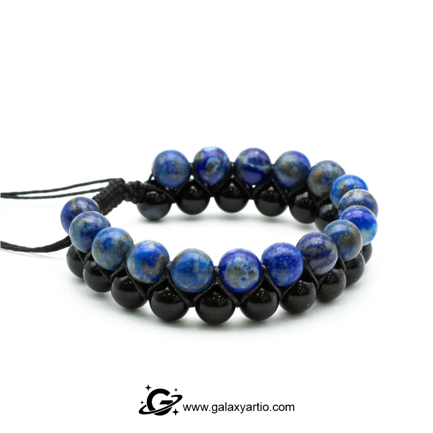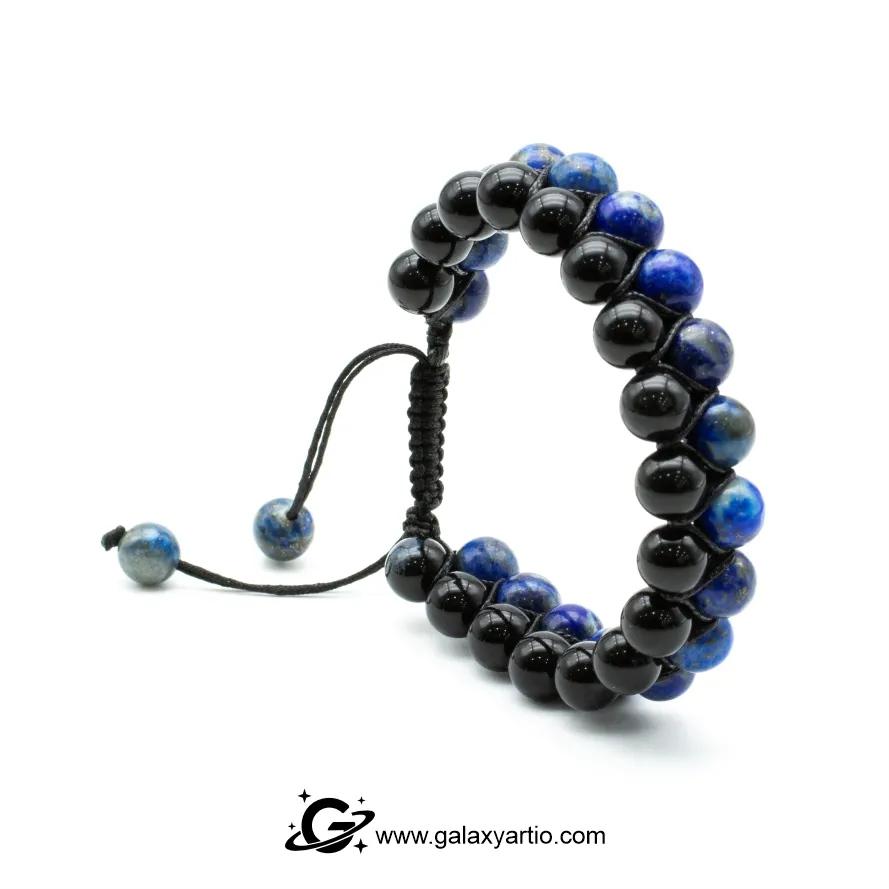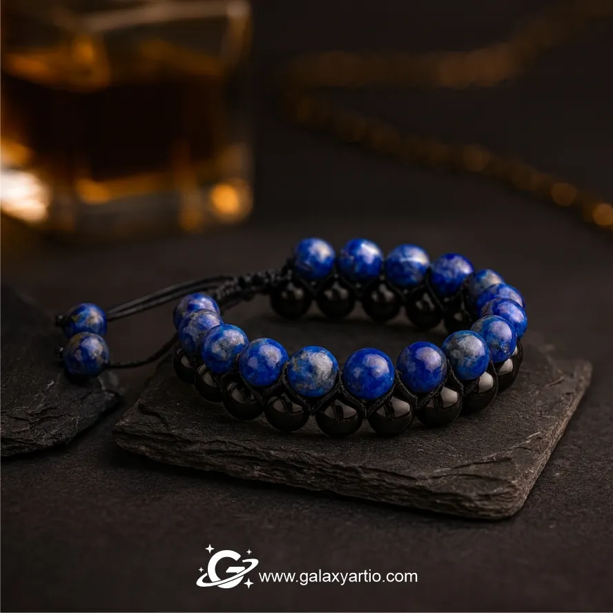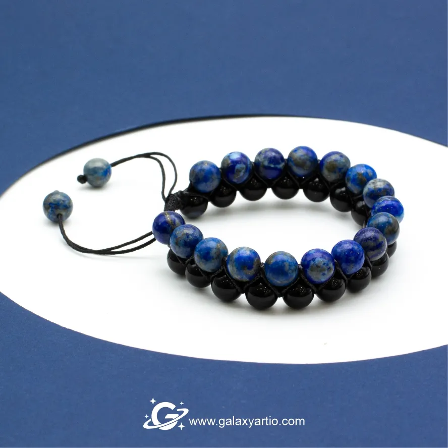 دستبند بلک سی یک اثر دست ساز منحصر به فرد است که از ترکیب دو سنگ قدرتمند و اصیل— لاجورد و عقیق سیاه