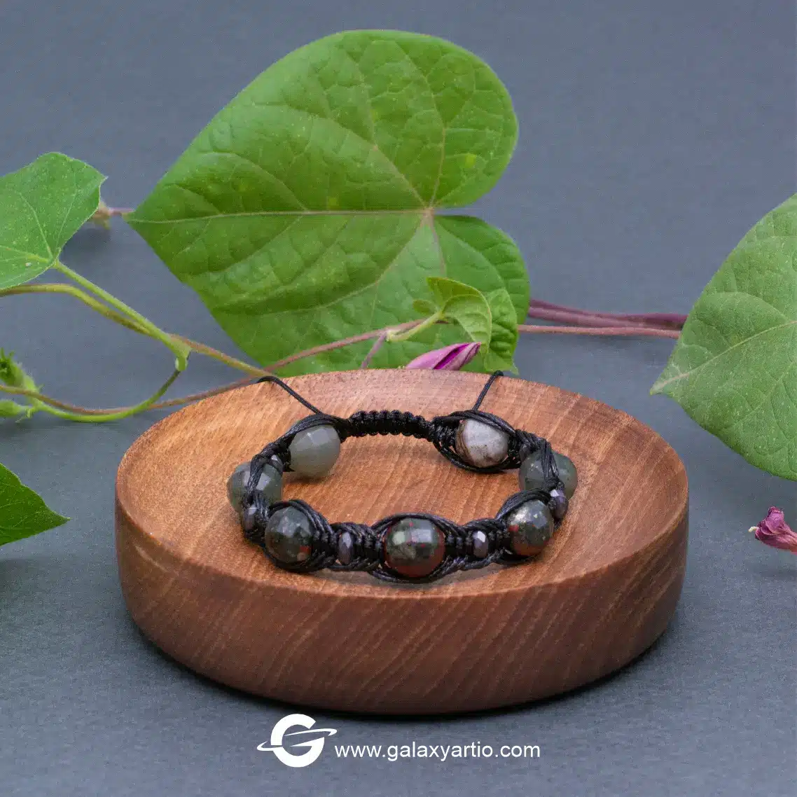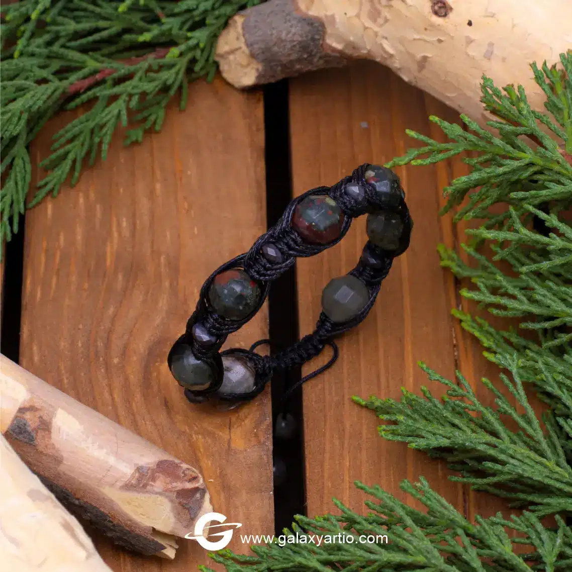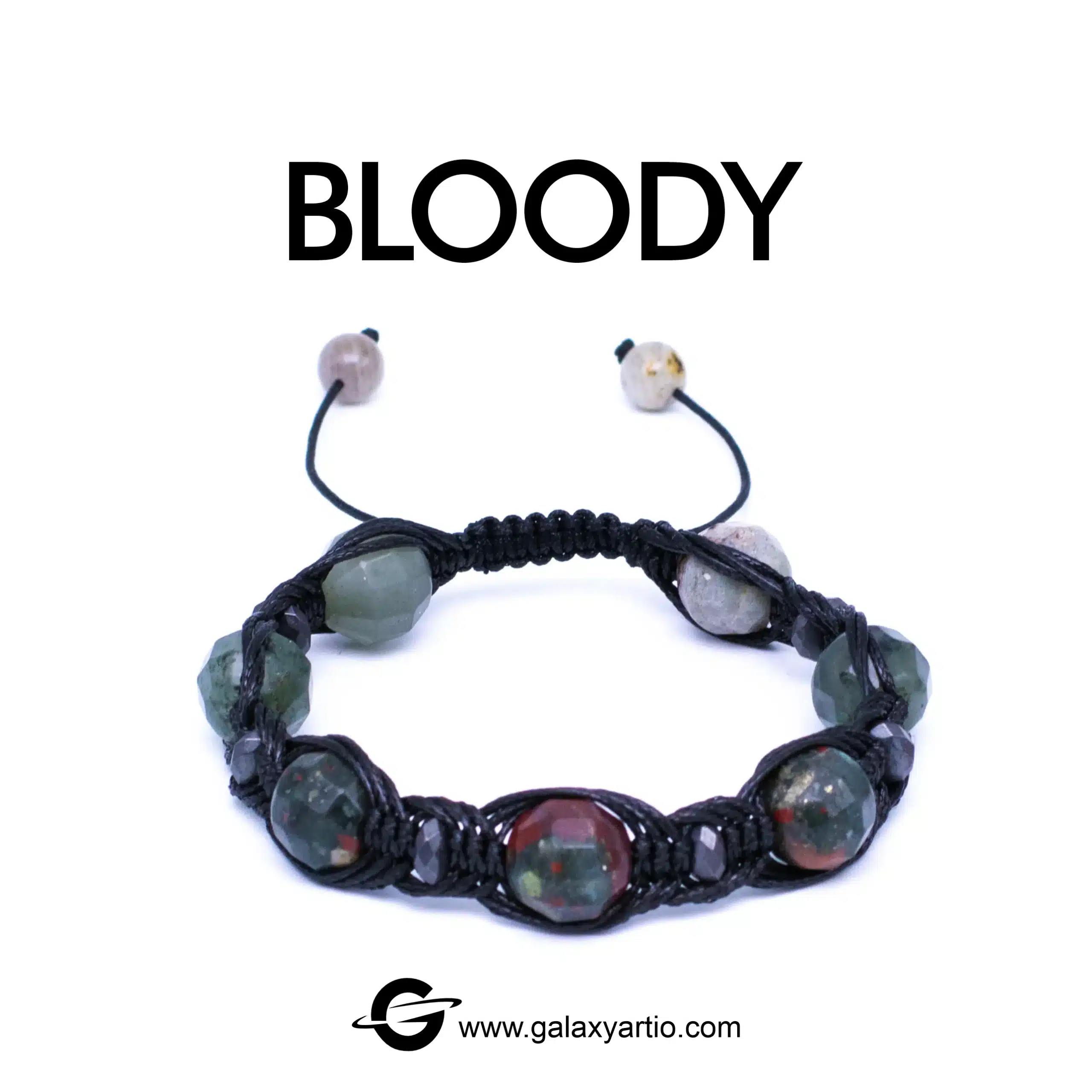 نام این دستبند نیز از آن الهام گرفته شده است، به خاطر رنگ خاص و ترکیباتش به این نام معروف است. این سنگ، نماد قدرت، شجاعت و پاکسازی است و از گذشتههای دور به عنوان سنگی مقدس و شفابخش مورد استفاده قرار میگرفت. استفاده از سنگ خون در دستبند بلادی باعث میشود تا افراد احساس انرژی و شادابی بیشتری داشته باشند و در مواجهه با چالشهای روزمره زندگی، روحیه و انگیزه بالاتری پیدا کنند. همچنین سنگ خون بهعنوان یک سنگ محافظ شناخته شده و از فرد در برابر انرژیهای منفی محافظت میکند.