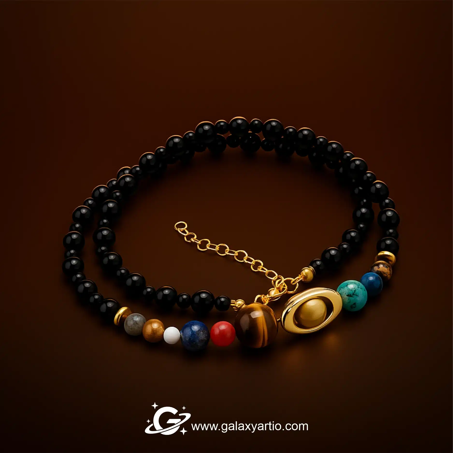 گردنبند سیارات یکی از شاهکار های خاص و متفاوت گلکسی آرت است که با الهام از عظمت کهکشان طراحی شده. این گردنبند منحصر به فرد از ترکیب سنگ های طبیعی و کمیاب ساخته شده که هر کدام نماد یک سیاره با انرژی و معنای خاص خود هستند. در مرکز این طراحی شگفت انگیز، حلقهی دور زحل از طلای ۱۸ عیار دست ساز میدرخشد؛ جزئی لوکس که گردنبند را به یک اثر هنری ارزشمند تبدیل میکند.