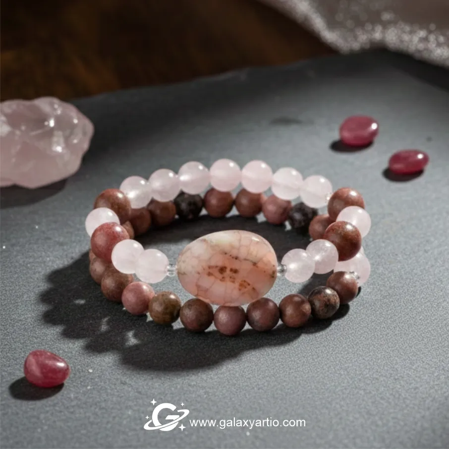 رز کوارتز که به «سنگ عشق بیقید و شرط» شناخته میشود، یکی از قدرتمند ترین سنگ ها در حوزه احساسات و روابط عاطفی است. این سنگ با ارتعاشات آرام و لطیف خود، به باز شدن چاکرای قلب کمک میکند، احساس امنیت عاطفی را افزایش میدهد و عشق را به شکلی آرام و پایدار در رابطه جاری میسازد. حضور رز کوارتز در دستبند ست عشق، نماد مهر، صمیمیت و پیوند قلبی میان دو نفر است.