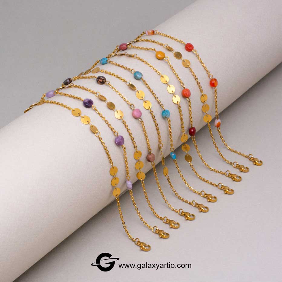 بیایید در مورد پابند های گلکسی آرت صحبت کنیم – به ویژه آنهایی که با سنگ های طبیعی تزئین شده اند. آنها فقط اکسسوری نیستند. آنها انعکاس کوچکی از زیبایی طبیعت و لمس ظرافت سنگ ها در استایل روزانه ما هستند.
