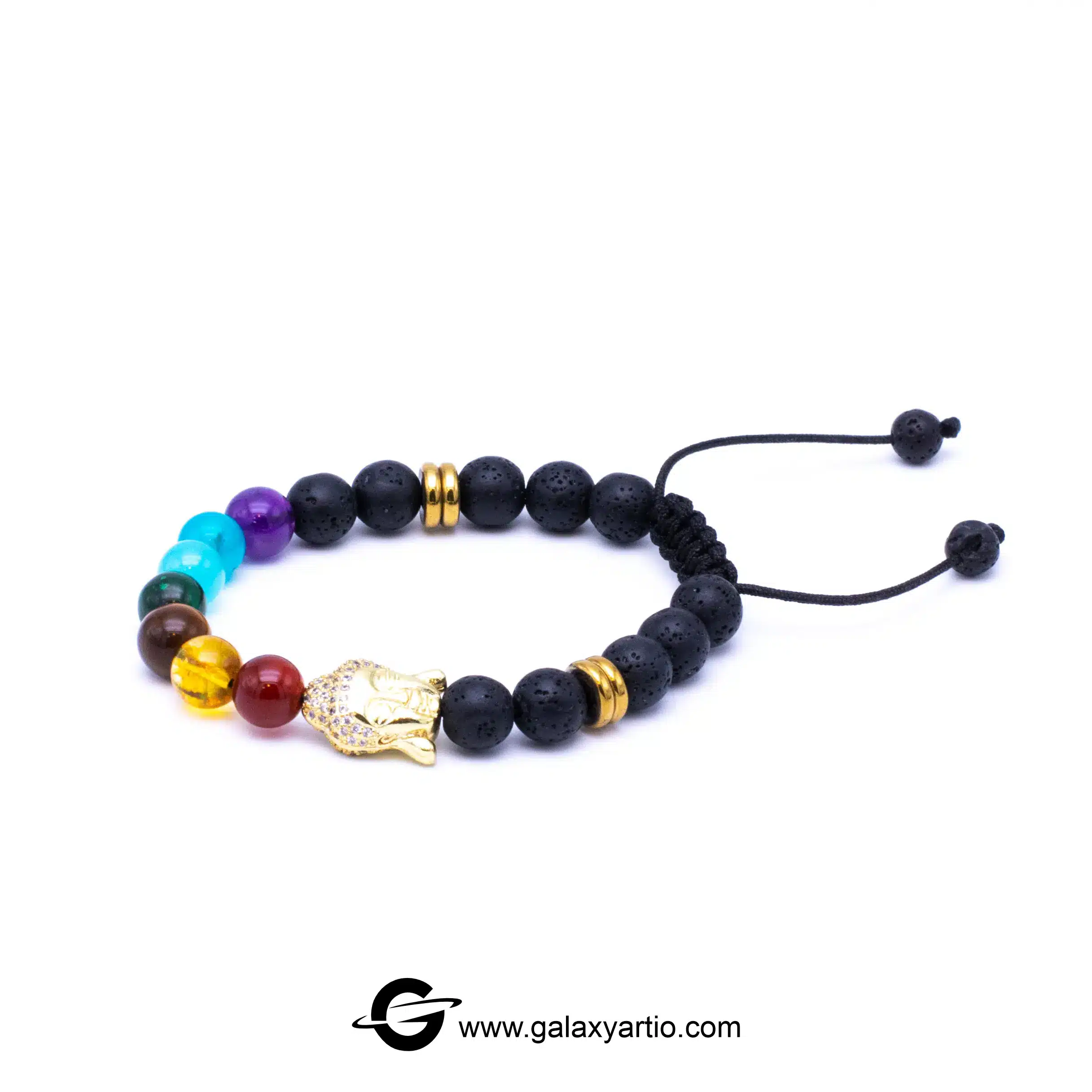 سنگ های چاکرا که در این دستبند به کار رفته اند، هر کدام انرژی خاصی را برای تقویت و تنظیم چاکرا های بدن به ارمغان میآورند و به بهبود سلامتی و افزایش تمرکز کمک میکنند. علاوه بر این، سنگ های لاوا آتش فشانی که در این دستبند استفاده شدهاند، به دلیل خواص درمانی و انرژی مثبتی که دارند، به تقویت قدرت درونی و جذب انرژی های منفی میپردازند.