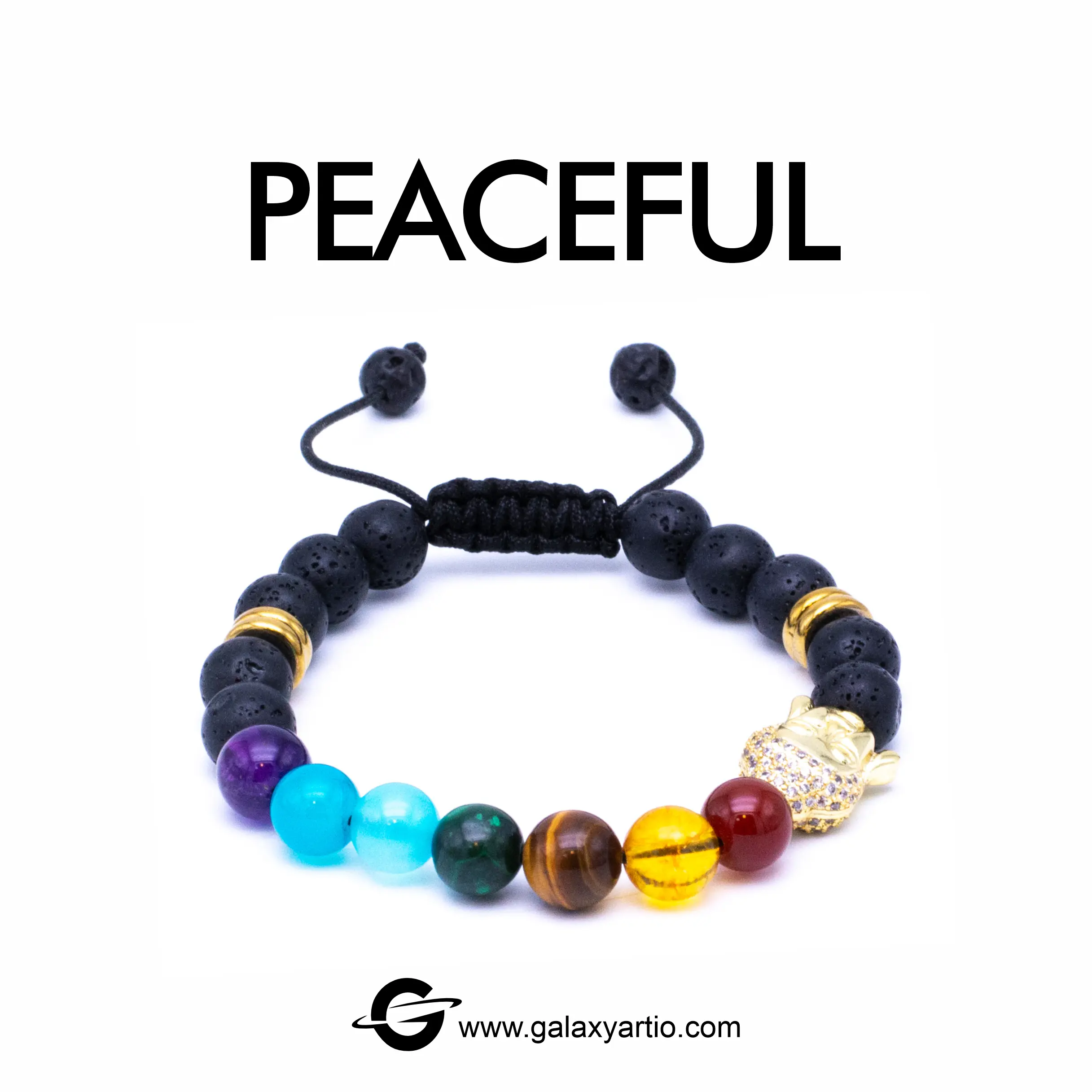 دستبند پیس فول (Peaceful Bracelet) یک دستبند خاص و آرامش بخش است که با ترکیب سنگ های اصلی چاکرا های بدن و پلاک استیل بودا نگین کاری شده طراحی شده است. این دستبند نه تنها یک اکسسوری شیک و زیبا است، بلکه به دلیل خواص معنوی سنگ های استفاده شده در آن، به ایجاد آرامش و تعادل در بدن و ذهن کمک میکند.