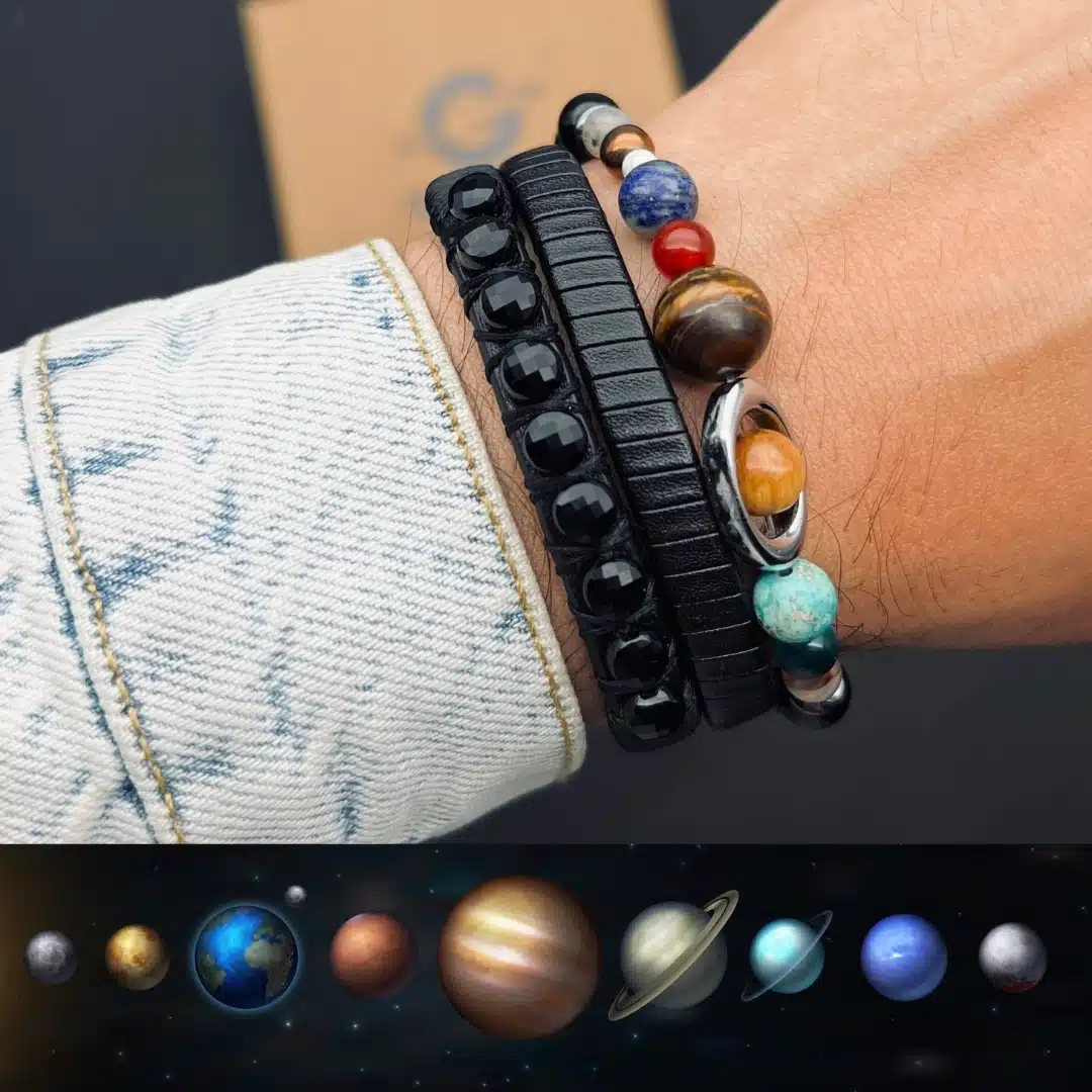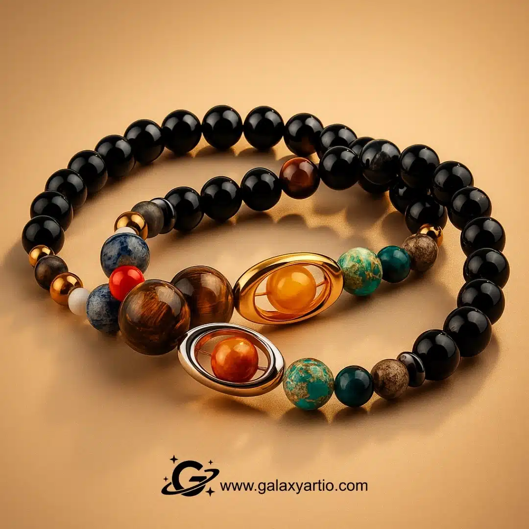 دستبند سیارات یک اکسسوری منحصر به فرد است که با الهام از منظومه شمسی و استفاده از سنگ های طبیعی اصل طراحی شده است.