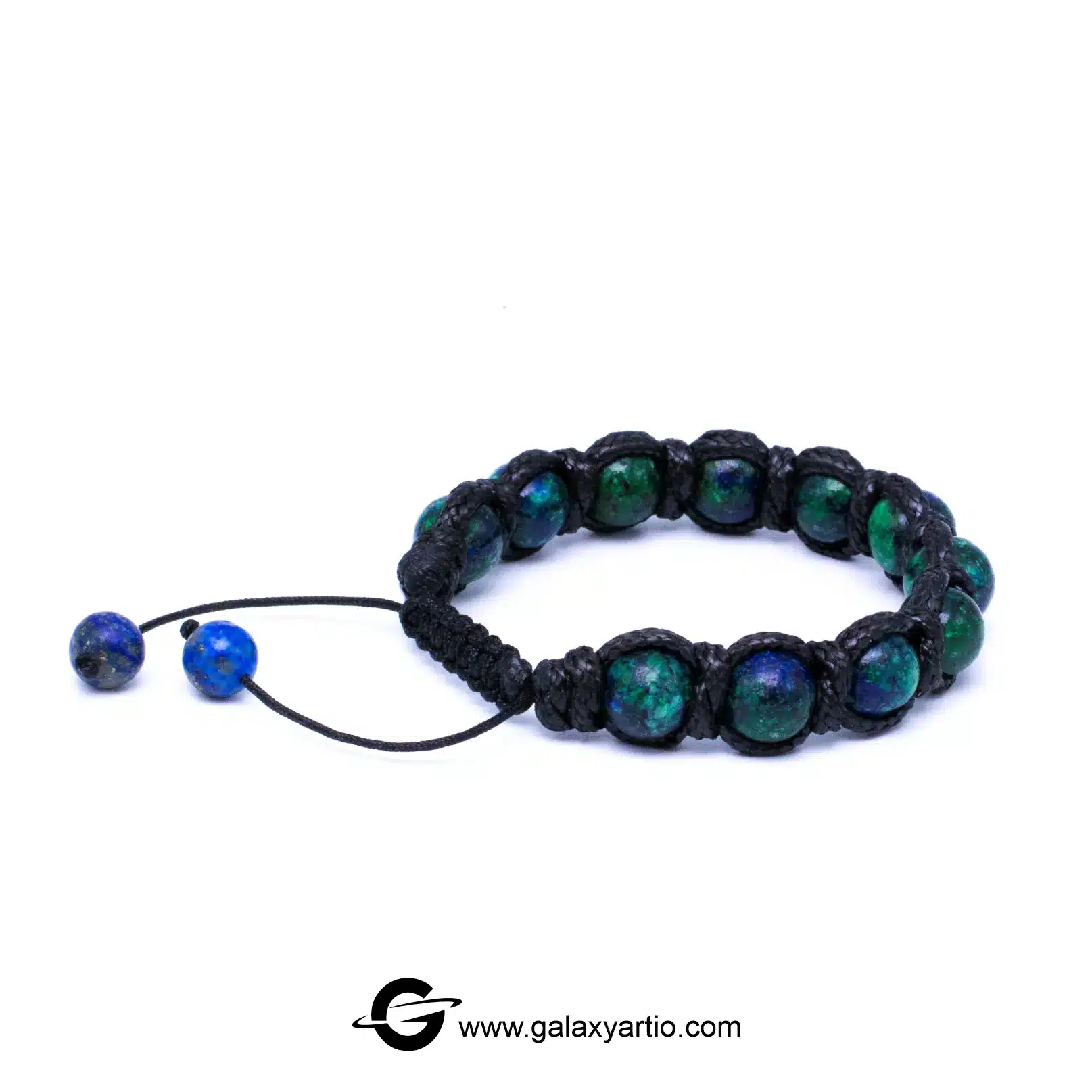 دستبند رامونا، یکی از زیباترین و خاص ترین طراحی ها در دسته دستبند های بافت سنگی است که با استفاده از سنگ کریزوکولا، نمادی از خرد و دانایی، طراحی شده است. این دستبند با تراش کروی 10 میلیمتری سنگ های طبیعی و ترکیب آن با بند چرم مصنوعی، به استایل شما جلوهای منحصربهفرد و مدرن میبخشد.
