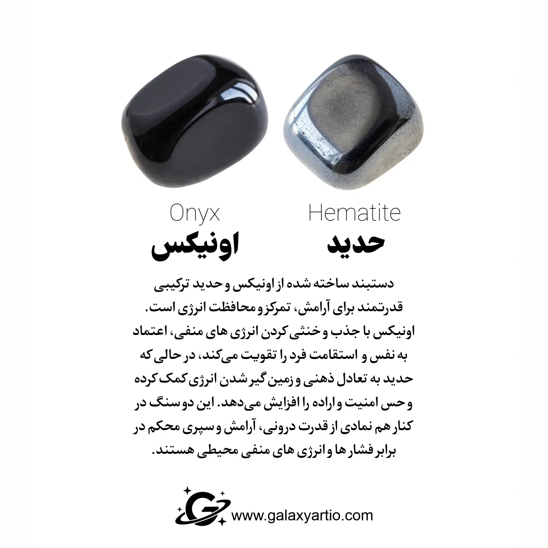 یکی از خاص ترین طراحی های گلکسی آرت است که با ترکیب سنگ های طبیعی و ارزشمند ساخته شده است. در این دستبند، اونیکس سیاه با رنگ عمیق و مات در کنار حدید تراش واشری با درخشش فلزی و مدرن قرار گرفته تا ترکیبی منحصر به فرد از قدرت درونی، آرامش ذهنی و محافظت انرژی را به همراه داشته باشد. این دستبند نه تنها یک اکسسوری شیک و جذاب، بلکه نمادی از استحکام، اعتماد به نفس و آرامش درونی است.