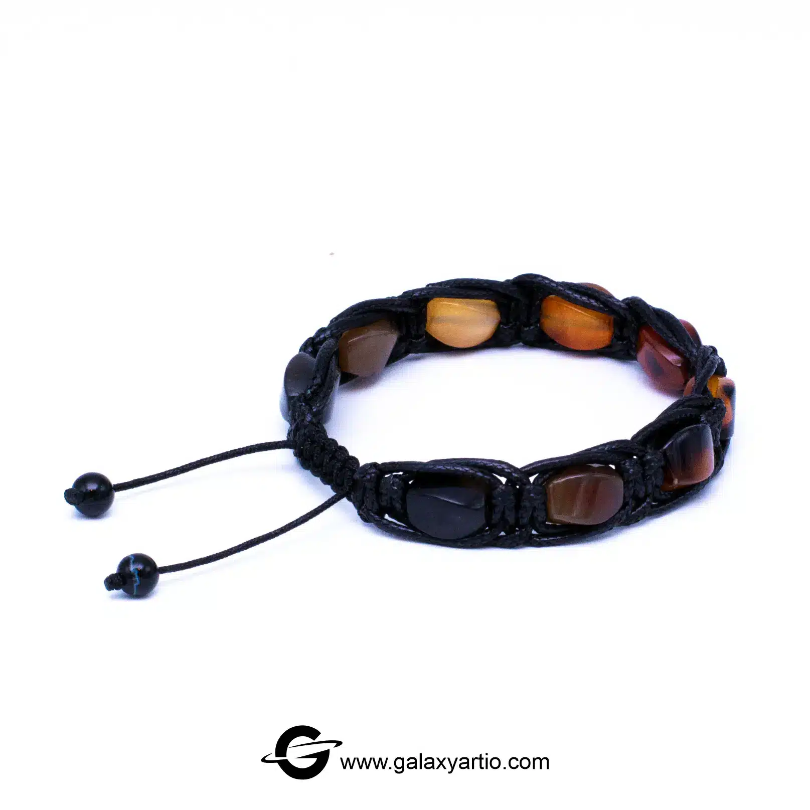 بند این دستبند از چرم مصنوعی با کیفیت بالا ساخته شده که نه تنها دوام زیادی دارد، بلکه حس راحتی را هنگام استفاده فراهم میکند. این طراحی به خوبی با سنگهای طبیعی هماهنگ شده و استایلی شیک و متفاوت ارائه میدهد. - قفل تنظیمی: