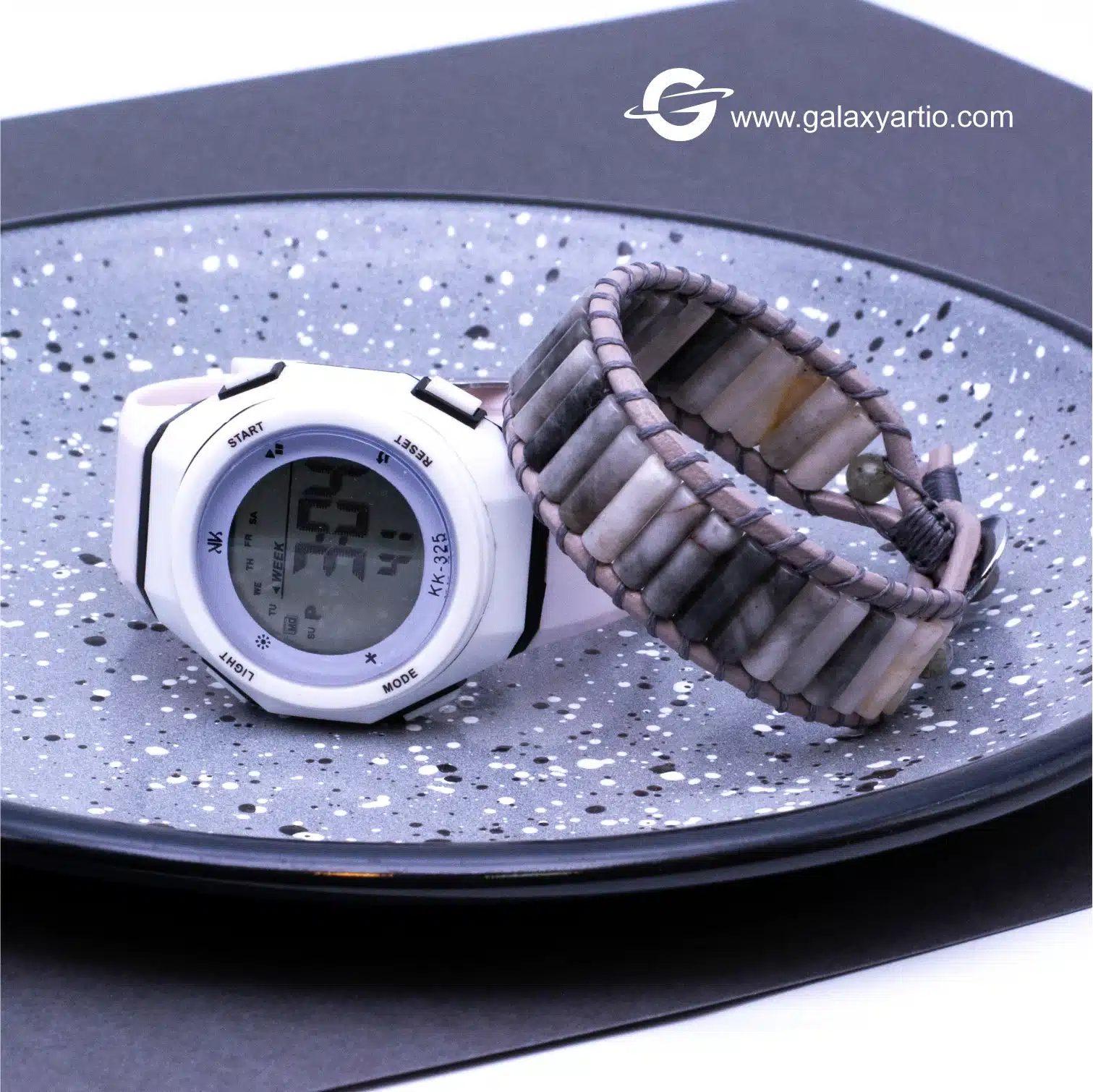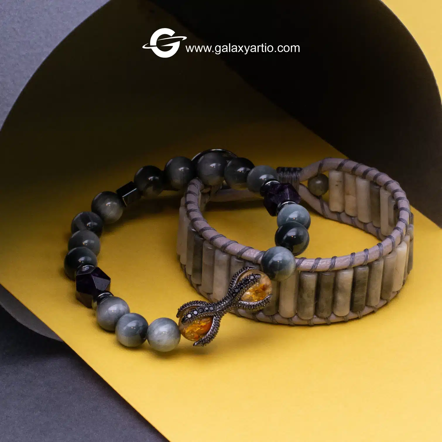 در این دستبند از سنگ جاسپر خاکستری استفاده شده؛ سنگی که در دنیای سنگ های درمانی به عنوان نماد آرامش ذهن، تعادل روحی و کاهش استرس شناخته میشود. رنگ خاکستری طبیعی آن، حال و هوایی مینیمال، شیک و در عین حال عمیق به این دستبند میدهد.
