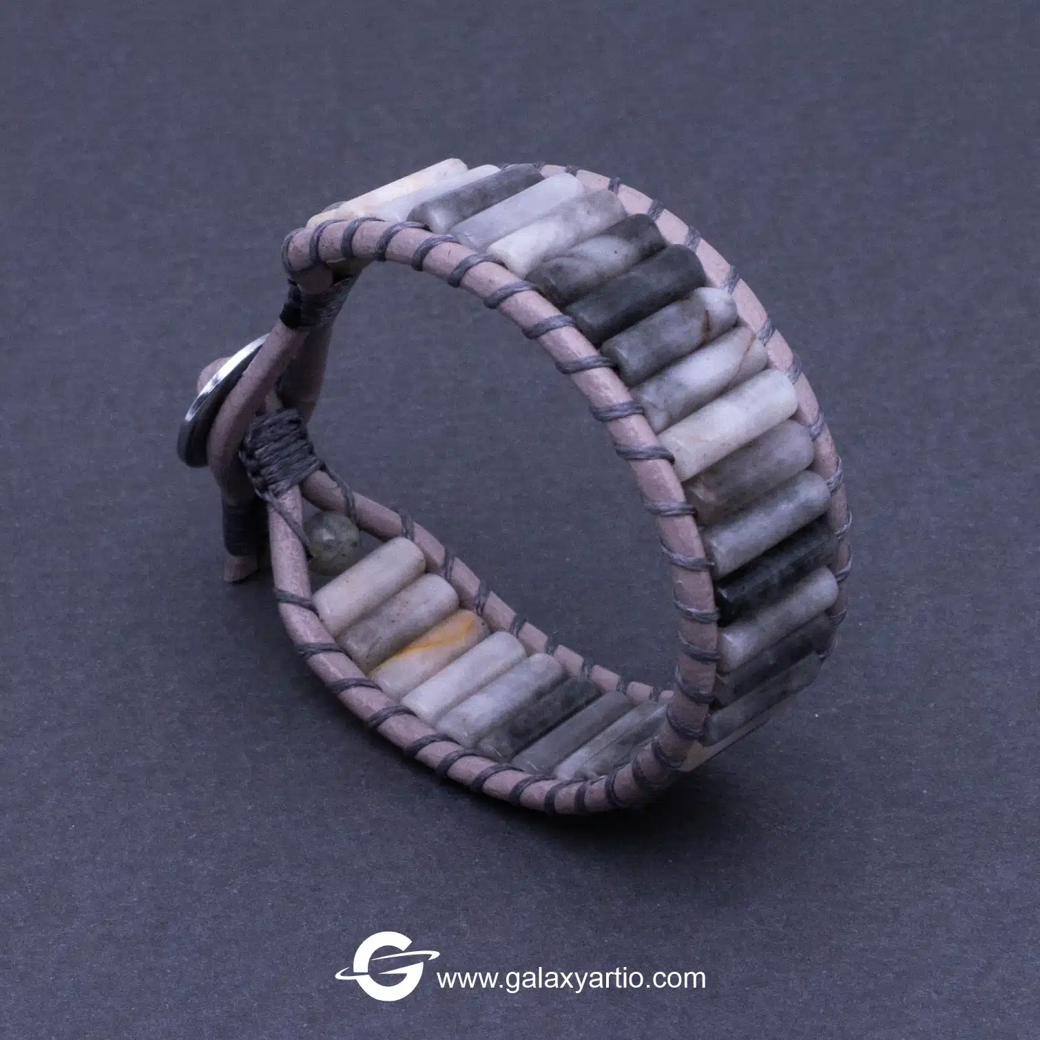 ترکیب چرم طبیعی و سنگ جاسپر خاکستری