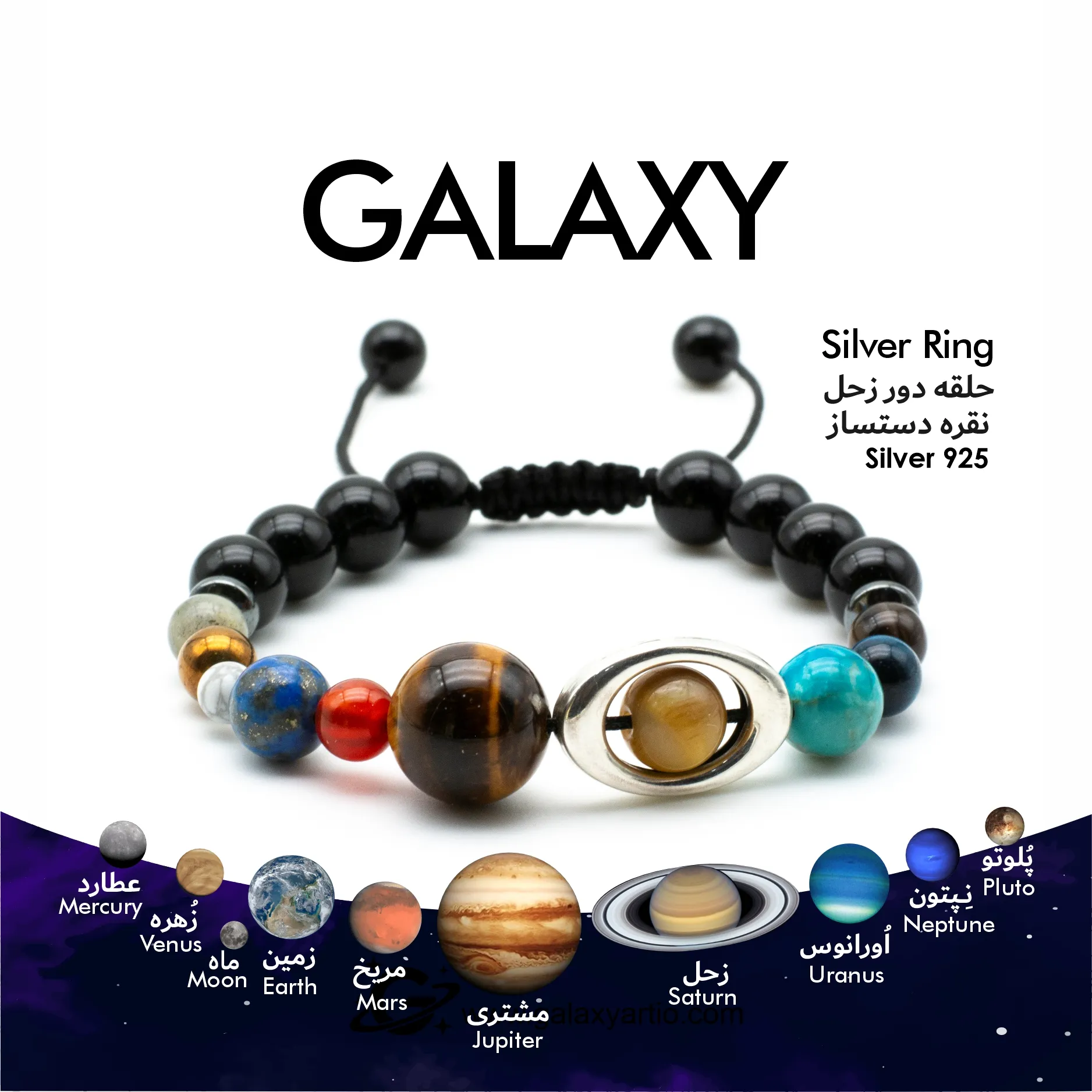 هر سنگ در دستبند سیارات گلکسی آرت نمایانگر یک سیاره و حامل انرژی خاصی است: