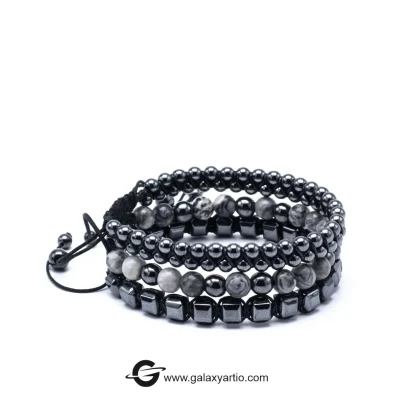 - ساختار منحصر به فرد: دستبند اسکایلر با استفاده از سنگهای هماتیت و جاسپر پیکاسو طراحی شده است. سنگ هماتیت با تراشهای خاص خود و سنگ جاسپر پیکاسو با طرحهای منحصر به فرد، زیبایی و شکوه خاصی به این دستبندها بخشیدهاند.