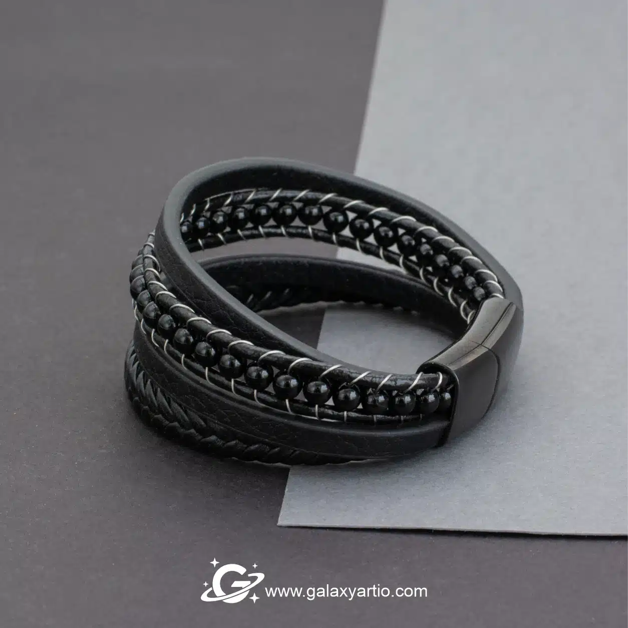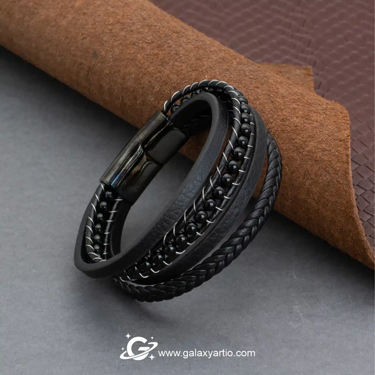 دستبند اسپارتان یکی از خاصترین مدلهای جدید گلکسی آرت است که با ترکیب چرم طبیعی گاوی و سنگ عقیق سیاه تراش جواهری طراحی شده. این دستبند خاص و اسپرت، نمادی از قدرت، جسارت و سلیقه متفاوت شماست.