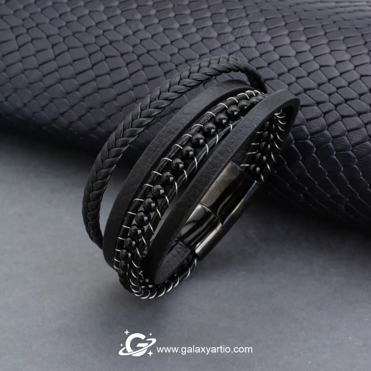 چرم طبیعی گاوی با دوخت دستدوز حرفهای، دوام و زیبایی بینظیری به این محصول بخشیده سنگ عقیق سیاه اصل با تراش جواهری، انرژی محافظتکننده و حس وقار را در استایل شما تقویت میکند.
