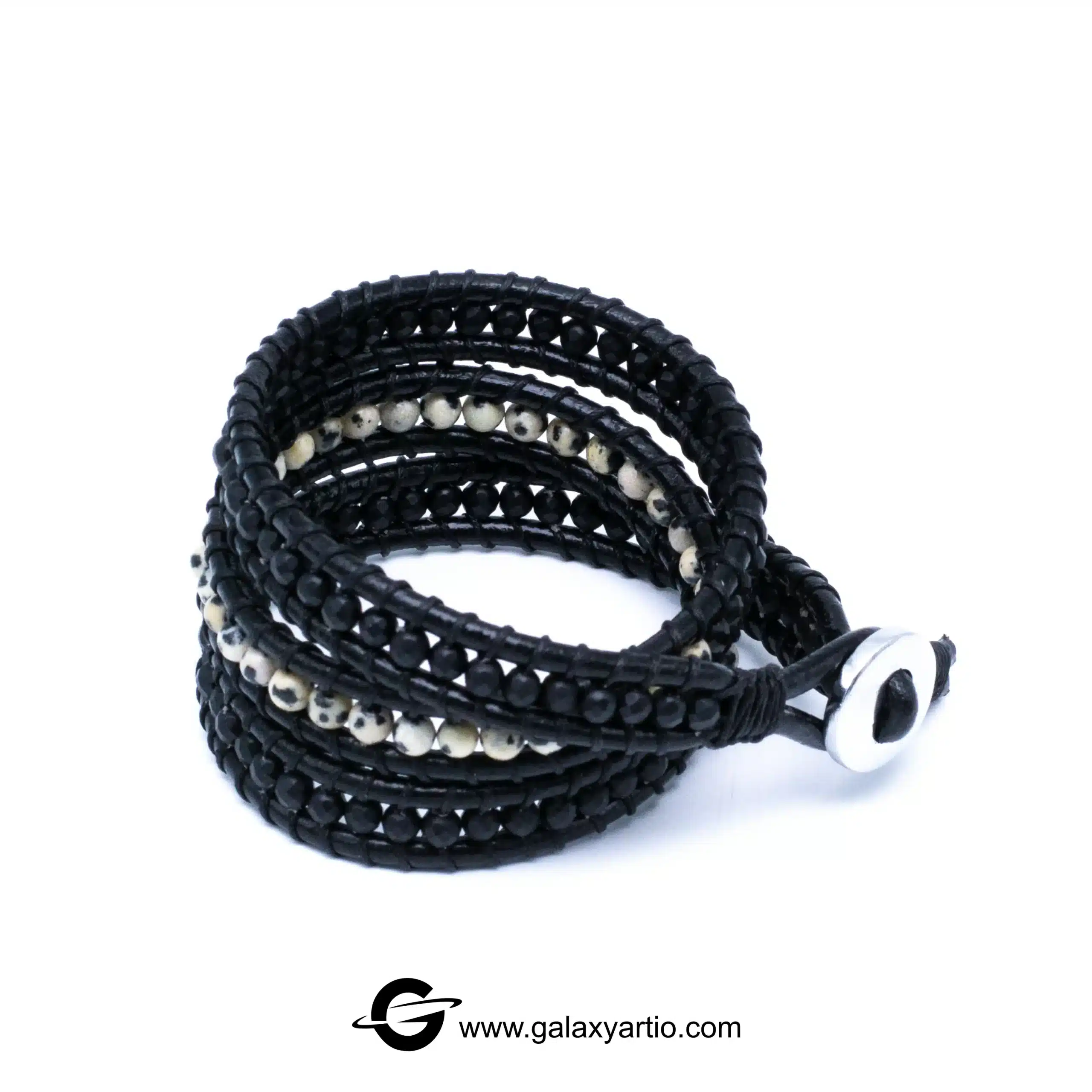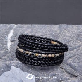 - جاسپر دالماتیان (Dalmation Jasper): این سنگ با تراش جواهری طراحی شده و دارای الگو های منحصر به فرد و رنگهای متنوع است که به زیبایی و جذابیت دستبند افزوده است.