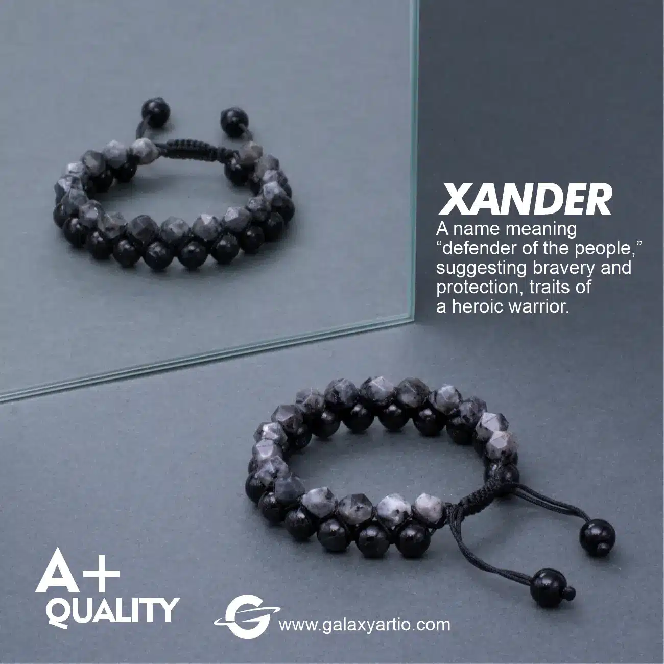 اسم “زاندر” به معنای “مدافع مرد” یا “مدافع مردم” است که در زبانهای مختلف با معانی مرتبط با محافظت و قدرت بیان میشود. این اسم به خوبی با خواص محافظتی سنگهای استفاده شده در این دستبند هماهنگ است و به معنای حفاظتی و قدرت از انرژیهای منفی و ایجاد آرامش و تعادل روحی اشاره دارد.